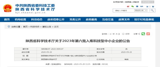 近日,陜西省科學技術廳公布了“陜西省2023年第六批入庫科技型中小企業名單”,陜西愛科仕精密科技有限公司順利通過認定,成功入庫。科技型中小企業是科技部授予的資質備案,是企業創...