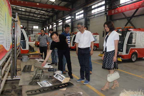 王總與皮主席在車間參觀了近期研發的新型清掃車,并對相關性能及生產情況進行了詳細的詢問。在隨后的座談會上,王超宏總經理詳細匯報了公司上半年目標任務完成情況、生產經營情況、重點工作的完成情況以及新項目的落實情況。對公司下半年及明年的工作思路作了詳細匯報。